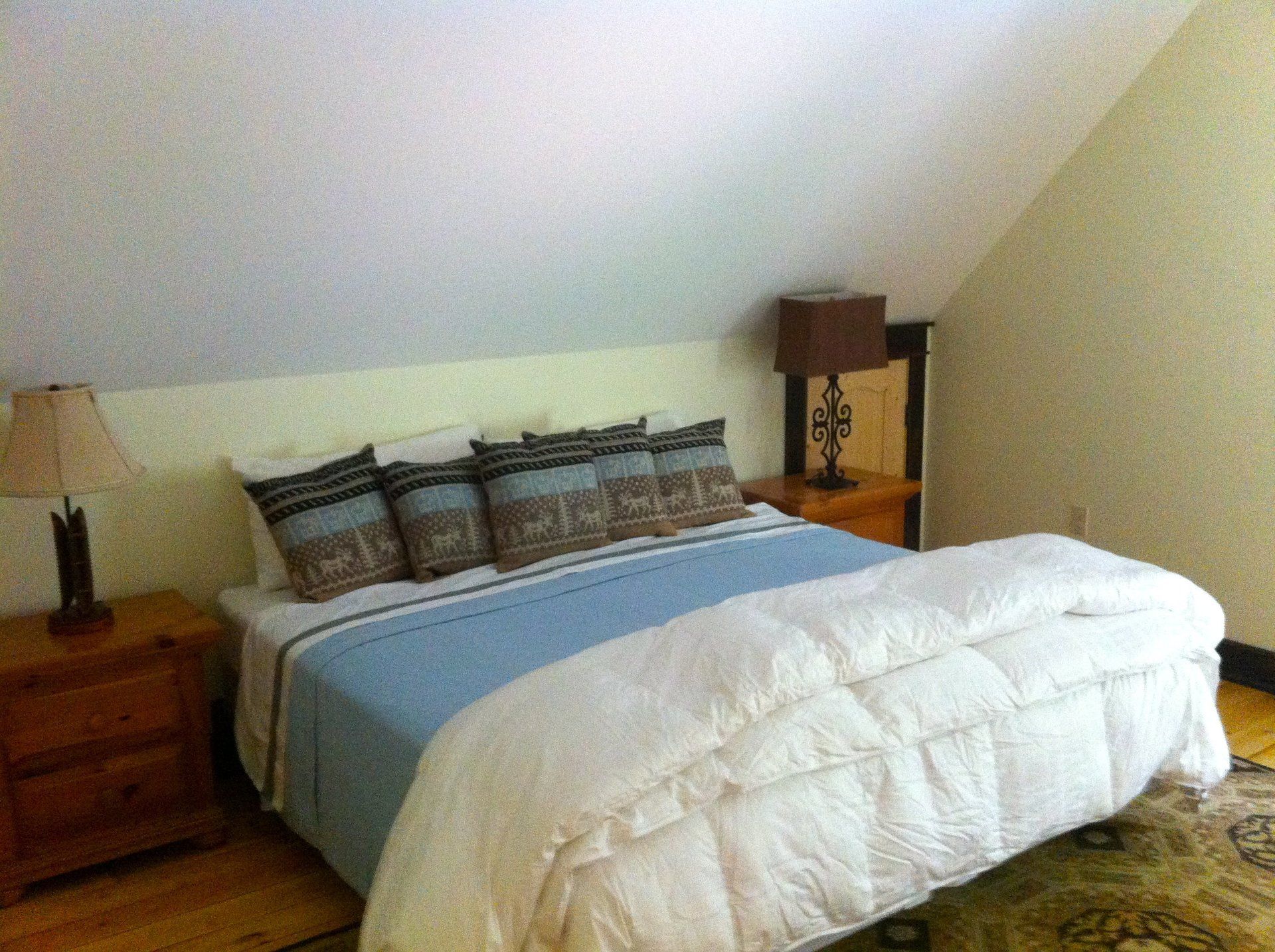 This bedroom has queen, a tucked away cubby cave for a young child, and a roll-a-way if needed.